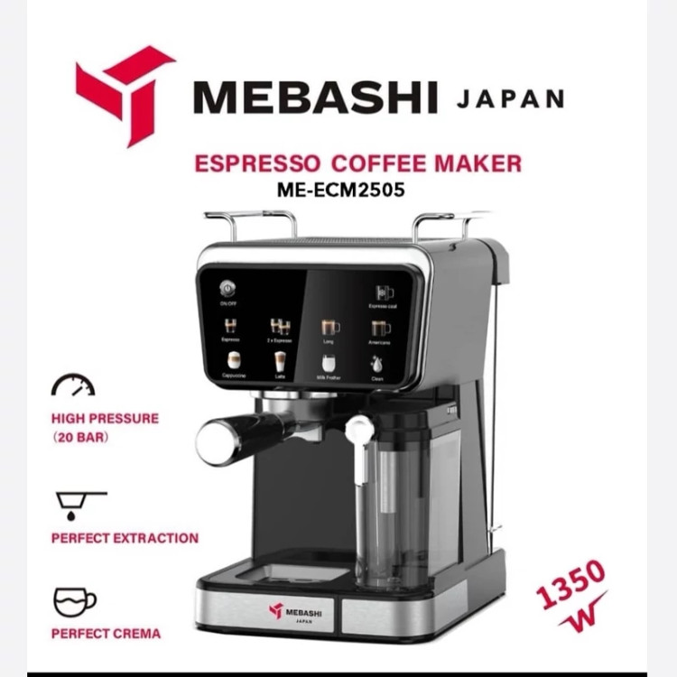 ساخت کشور: چین تحت لیسانس ژاپن توان مصرفی: 1350 وات فشار بخار: 20بار حجم مخزن آب: 1.5لیتر حجم مخزن شیر: 0.5 لیتر صفحه نمایش لمسی: دارد قابلیت: اسپرسو – کافه لاته -امریکانو-کاپوچینو-کافه لاته-اسپرسو سرد-قابلیت تمیزکردن خودکار یکی از جدید ترین اسپرسوساز های برند مباشی مدل ME-ECM2505 که طراحی بسیار زیبا و بسیار شیک دارد. بدنه این دستگاه از پلاستیک فشرده طراحی شده که بسیار شیک و عالی است.
