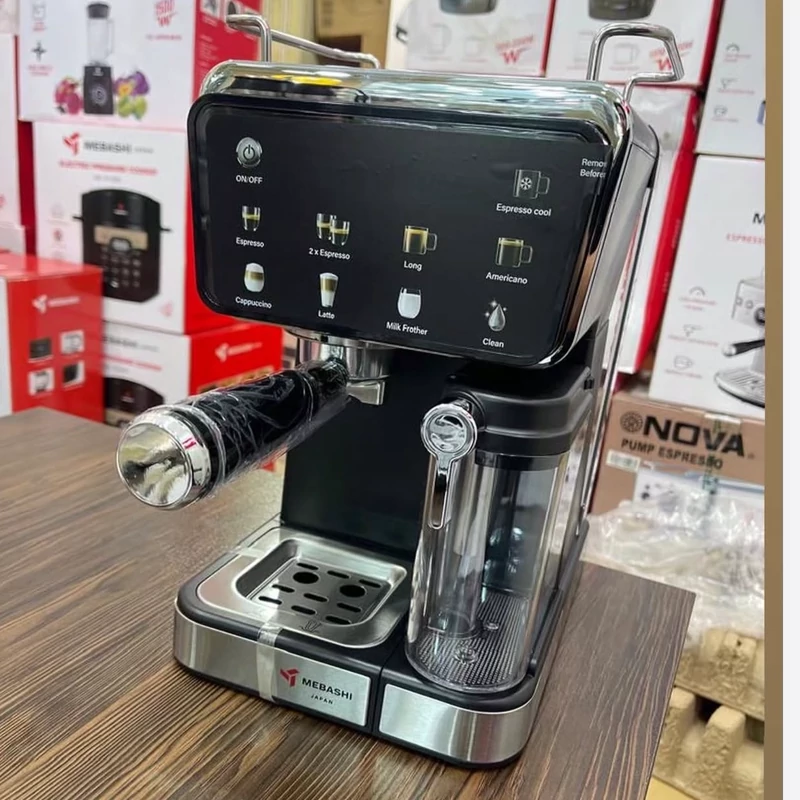 ساخت کشور: چین تحت لیسانس ژاپن توان مصرفی: 1350 وات فشار بخار: 20بار حجم مخزن آب: 1.5لیتر حجم مخزن شیر: 0.5 لیتر صفحه نمایش لمسی: دارد قابلیت: اسپرسو – کافه لاته -امریکانو-کاپوچینو-کافه لاته-اسپرسو سرد-قابلیت تمیزکردن خودکار یکی از جدید ترین اسپرسوساز های برند مباشی مدل ME-ECM2505 که طراحی بسیار زیبا و بسیار شیک دارد. بدنه این دستگاه از پلاستیک فشرده طراحی شده که بسیار شیک و عالی است.
